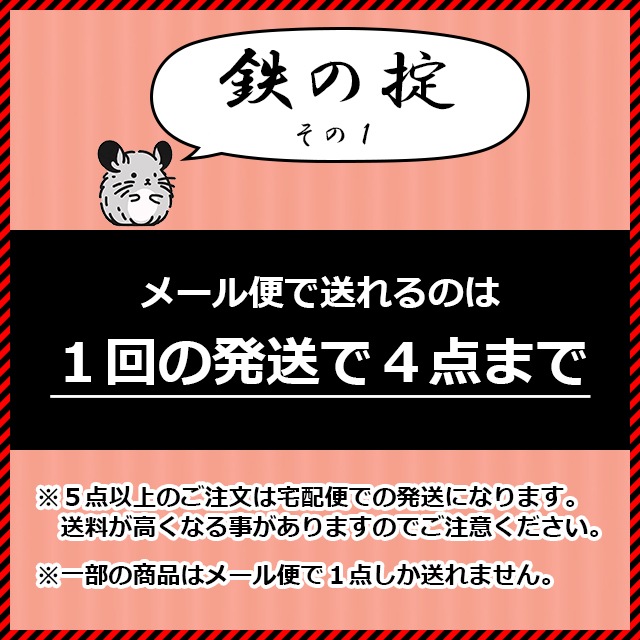 | このページを見ているってことは、チンチラを飼っていたり興味がある人ですね! こんな隅っこまで見てくれてありがとうございます… チンチラは、もともとアンデス山脈に住んでいた夜行性の草食動物です。 げっ歯類(ねずみの仲間)で、一生伸び続ける歯を持っています。 飼育時の食事は、主食の牧草(7?8割くらい)と栄養を補うペレットフードです。 牧草は一日中食べられるようにたっぷりと入れておくと、歯の伸びすぎや不正咬合(ふせいこうごう)の予防にもなります。 当店では主にペレットフードを取り扱っています。 メール便対応のお試しフードは、開封後すぐに小分けして密封パックしています。 こまめに小分けパックを使うと、保管中のにおい移りなどがないので新鮮です。 フワフワでずんぐりした体型に見えますが、運動が大好きですばやく動き回ります。 走るだけでなくジャンプしたり上下に動きまわるのも得意です。 いたずらも好きなので、お部屋で散歩させるときは目を離さないようにしてください。 せまいところに入り込んだり、家具やコード類なども齧ったりするので、サークルやフェンスを使うと安心です。 濡れると乾きにくいので、水浴びはNGです。 砂浴びで余分な皮脂(ラノリン)や汚れを取り除いて、体をきれいにしています。 当店オリジナルの砂浴び砂もあるので、ぜひご覧になってみてくださいね。 |