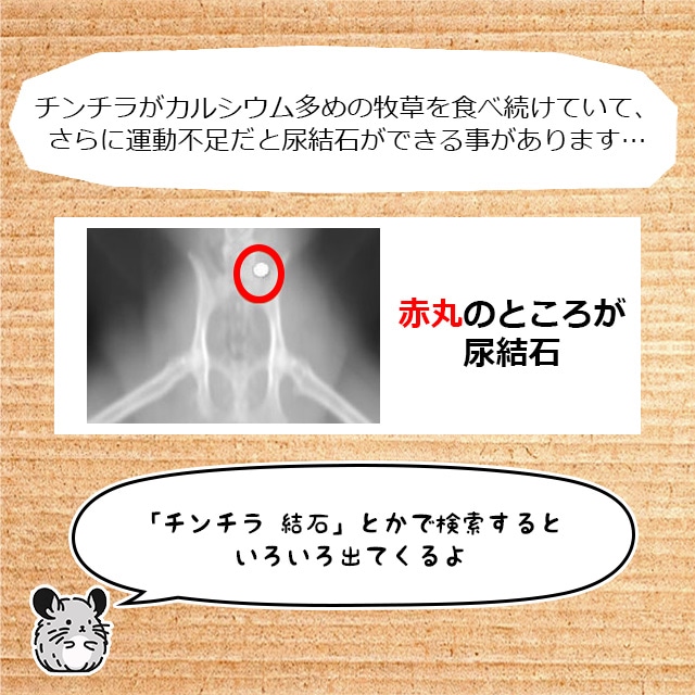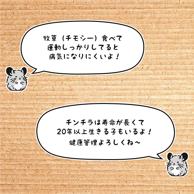 | このページを見ているってことは、チンチラを飼っていたり興味がある人ですね! こんな隅っこまで見てくれてありがとうございます… チンチラは、もともとアンデス山脈に住んでいた夜行性の草食動物です。 げっ歯類(ねずみの仲間)で、一生伸び続ける歯を持っています。 飼育時の食事は、主食の牧草(7~8割くらい)と栄養を補うペレットフードです。 牧草は一日中食べられるようにたっぷりと入れておくと、歯の伸びすぎや不正咬合(ふせいこうごう)の予防にもなります。 当店では主にペレットフードを取り扱っています。 メール便対応のお試しフードは、開封後すぐに小分けして密封パックしています。 こまめに小分けパックを使うと、保管中のにおい移りなどがないので新鮮です。 フワフワでずんぐりした体型に見えますが、運動が大好きですばやく動き回ります。 走るだけでなくジャンプしたり上下に動きまわるのも得意です。 いたずらも好きなので、お部屋で散歩させるときは目を離さないようにしてください。 せまいところに入り込んだり、家具やコード類なども齧ったりするので、サークルやフェンスを使うと安心です。 濡れると乾きにくいので、水浴びはNGです。 砂浴びで余分な皮脂(ラノリン)や汚れを取り除いて、体をきれいにしています。 当店オリジナルの砂浴び砂もあるので、ぜひご覧になってみてくださいね。 |
