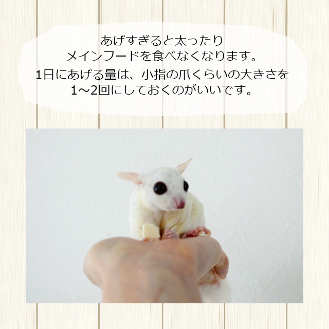 | こんな隅っこの文章まで読んでくれてありがとうございます。 当店ももんがもんもん共和国といいまして、フクロモモンガ用品の専門店をやっとります・・・ フクロモモンガはコアラやカンガルーの仲間で、外国ではSugar Glider(シュガーグライダー)と呼ばれています。 夜行性なので、エサは活動をし始める夕方~夜に与えるのがいいです。 時間を空けて2回に分けて与えるとさらに良いです。 栄養バランスが考えられているフクロモモンガ専用のフードがあります。 ペレットフードを食べてくれると、とても栄養管理がしやすくなります。 いろんな種類のフクロモモンガフードがあるので、お気に入りを探してみてください。 もんもん共和国のオリジナルフードは、食いつきの良さにこだわっています! 当店ではメール便対応のお試しフードも用意しています。50g~80gの少量サイズです。 偏食をしたり好みの個体差が激しいので、最初はお試しサイズがおすすめです。 フードの切り替えのときに個体によっては新しいエサを食べない場合があります。 前の餌に少しずつ混ぜて与え、徐々に慣らしながら切り替えましょう。 フクモモは野生だと虫を食べることが多いので、昆虫が大好物です。(たまに食べない子もいます) カルシウムが豊富なソルジャーグラブは、くる病予防にもオススメです。 ほかにもメジャーなミルワームやハニーワームなどいろいろ取り揃えています。 フクモモ専用フードやねぶくろポーチなどのフクモモグッズも取り扱っています。 寝ぶくろポーチは汚れやすいので、洗濯用に数枚用意してあげると便利です。 他の商品もぜひご覧になってみてくださいね! |